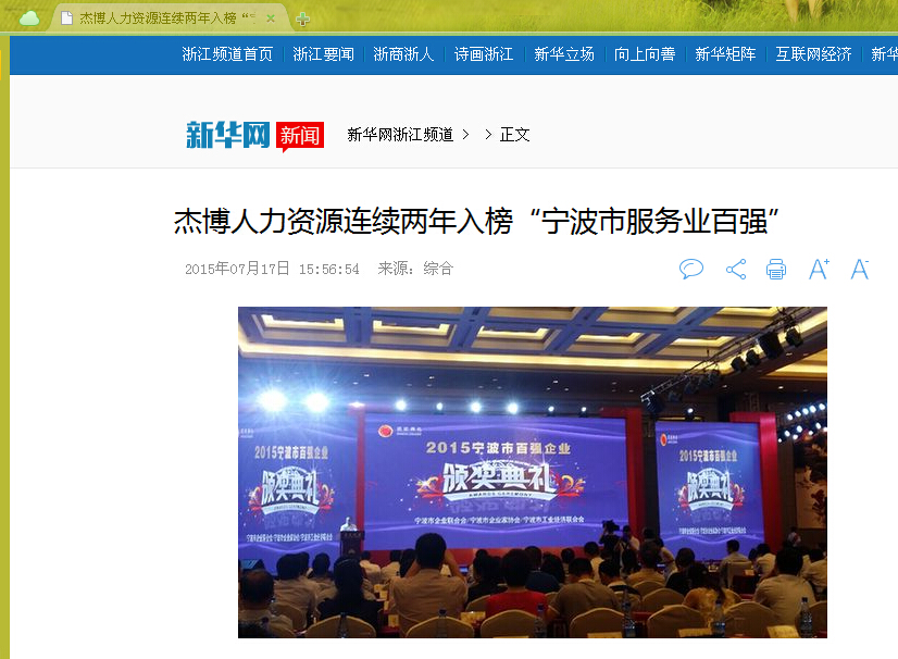 備受社會(huì)各界關(guān)注的“2015寧波百?gòu)?qiáng)榜”于7月16日發(fā)布,“寧波制造”、“寧波服務(wù)”、 “寧波競(jìng)爭(zhēng)力”等再次引起社會(huì)各界的廣泛關(guān)注,其中的“寧波服務(wù)”越來(lái)越受到重視,已然成為百?gòu)?qiáng)榜中的重要組成部分。以杰博人力資源等為代表的“寧波服務(wù)”更是在寧波的軟實(shí)力發(fā)展上下大力氣,以“寧波服務(wù)”服務(wù)全國(guó)乃至全球。