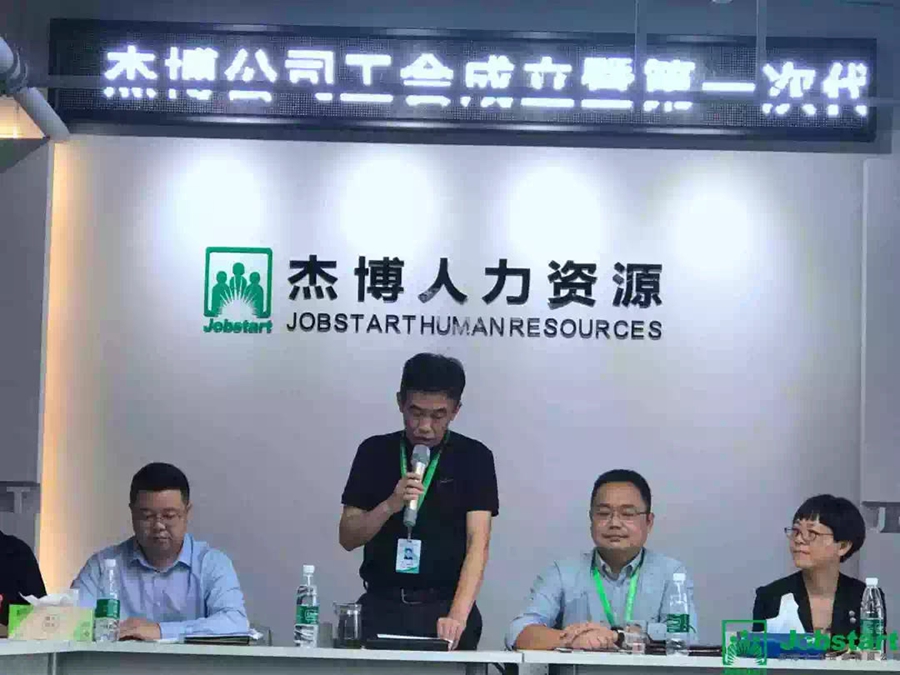 緊接著,明樓街道總工會(huì)蔡軍主席代表總工會(huì)也做了發(fā)言,并對(duì)寧波杰博人力資源有限公司第一屆工會(huì)成立暨第一次職工代表大會(huì)的圓滿成功表示真摯地祝賀。